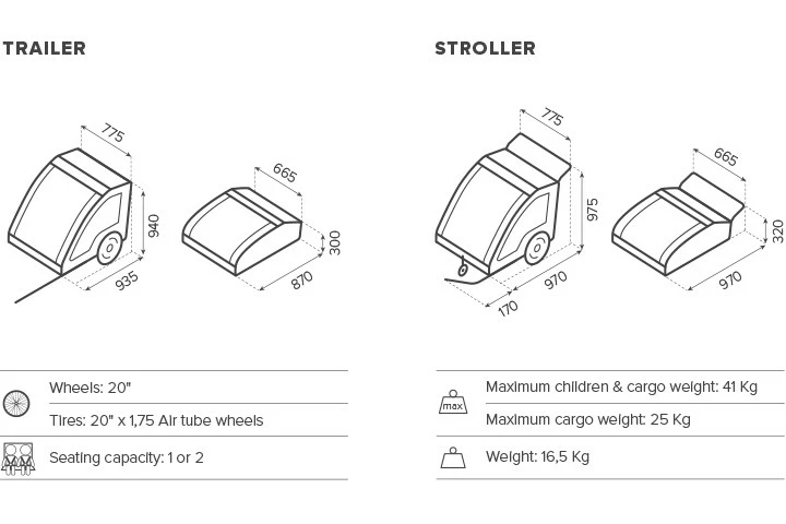 If you’re not in the mood for a bike ride, you can also use the trolley as a normal pushchair by attaching the included wheel to the front of the trolley.