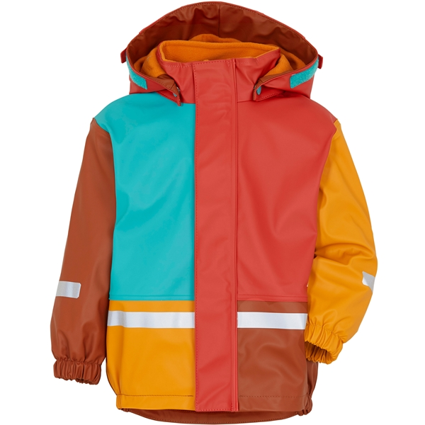 Tuulen- ja vedenpitävä sadepuku, jossa on fleecevuori lapsille.