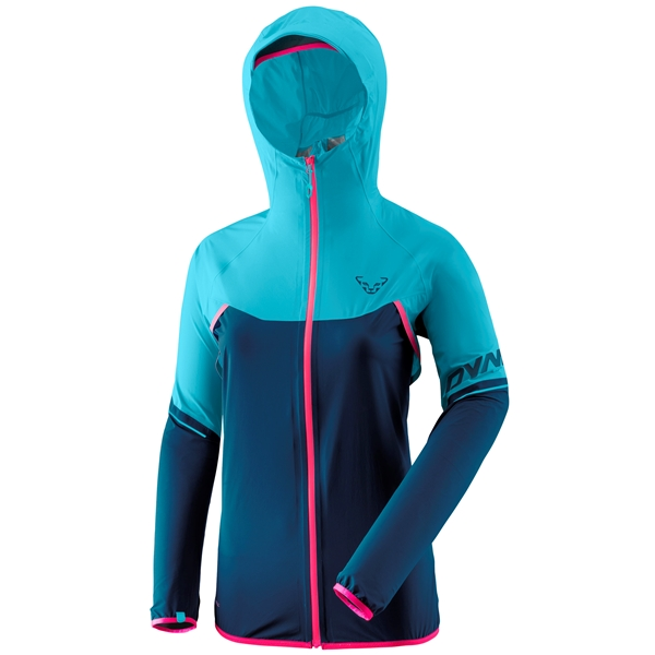 Dynafit Alpine WP 2.5L W Jacket on erittäin kevyt, hengittävä, tuulenpitävä ja täysin vedenpitävä takki, jossa on teipatut saumat. Dynafitin innovatiivinen Zip-Over Backpack System on integroitu tähän takkiin, joka suojaa reppua ja sen sisältöä kosteudelta voimakkaiden sadekuurojen aikana. Kestävän ja pehmeän ulkokankaan ansiosta voit kantaa reppuja takin päällä, kun taas kangas on erittäin pehmeän tuntuista, ohutta ja hieman venyvää, mikä lisää mukavuutta toiminnan aikana. Takki tarjoaa lisätuuletusta kainaloiden alla olevien laserreikien avulla, ja heijastavat yksityiskohdat parantavat näkyvyyttä huonolla säällä. Takki voidaan nopeasti pakata pieneen tilaan ja pakata huppuun.