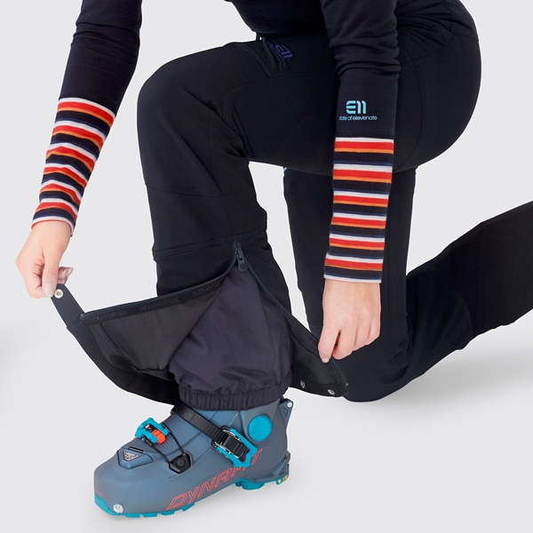 Elevenate W Free Tour Pants ovat kulutuskestävät, mukavat naisten lasketteluhousut, jotka ovat täydelliset vaelluksille ja offpiste-lasketteluun. Housut on valmistettu kulutuskestävästä, hengittävästä ja kosteutta siirtävästä neljään suuntaan joustavasta materiaalista, joka suojaa tuntureiden epävakailta sääolosuhteilta ja lahkeensuissa on Schoeller Keprotec -vahvikkeet. Housuissa on useita taskuja, joista yhdessä suurikokoisessa vetoketjutaskussa on sisäpuolella mesh-tasku lumivyörylähettimelle. Lasketteluhousuissa on myös tarranauhasäätö vyötäröllä, esitaivutetut polvet, vetoketjut lahkeensuissa sekä lumilukot.