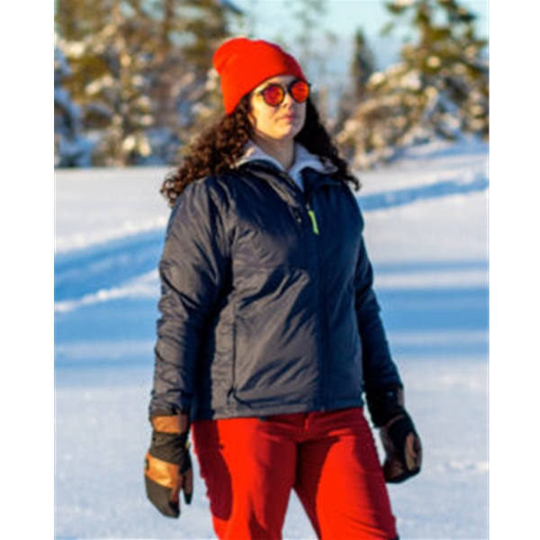 Kevyt ja lämmin päällysvaate, joka muuttaa takin napin painalluksella lämpimäksi välikerrokseksi kylmimpinä talvipäivinä. Naisille.