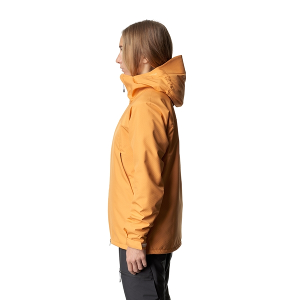 Naisten Pace Jacket -takki on valmistettu uudesta materiaalista, jonka nimi on Octa C9 Ripstop. Sillä on sileä ja notkea ulkopuoli ja sisäpuolen filamenttikuitu luo kevyen eristysvaikutuksen ilman hengittävyyskyvyn menettämistä. Kangas estää tuulta ja se on käsitelty fluorihiilettömällä, vettä hylkivällä kyllästeellä, joka suojaa sinua kevyemmiltä lumisateilta ja sadekuuroilta. Vaatteen idea on antaa sinulle hyvä suoja säätä vastaan mutta ilman, että se vähentäisi vaatteen hengittävyyskykyä, jotta kehosi voi työskennellä ilman, että sinulle tulee liian kuuma. Takissa on kaksi sivutaskua sekä säädettävät huppu ja helma.