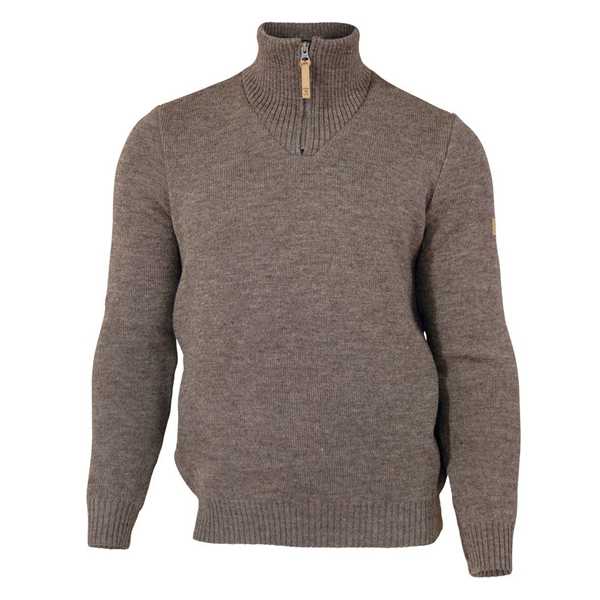Luonnollisesta, valkaisemattomasta ja värjäämättömästä villasta valmistettu vankka villapaita, jossa on miehille sopiva kaulus.