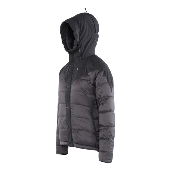 Klättermusen Atle 2.0 Jacket on tyylikäs untuvatakki naisille – täydellinen otettavaksi mukaan kaikkialle, koska se on kevyt ja niin kokoon puristuva, että se voidaan pakata omaan pakkaustaskuunsa. Puristuvuus tekee siitä myös täydellisen istuvan eristevaatteena kuoritakin alla sääolosuhteiden niin vaatiessa, kun tarvitset esimerkiksi sekä lämpöä ja sateensuojaa. Myös takin hartiaosat on vahvistettu antamaan tietyn vedenpitävyyden. Takki on valmistettu laatikkomaisella rakenteella ilman läpikulkevia saumoja, mikä tarkoittaa, että vältät vedon takissa, joka voisi muuten jäähdyttää vartalon korkean fillpowerin untuvaeristeestä huolimatta. Lisäksi siinä on untuvilla täytetty, vahvistettu tuulisuoja, jossa on napit vinon vetoketjun edessä parantamassa lämmön säilyvyyttä sekä lisäämässä ilmanvaihtomahdollisuuksia. Takin huppu on myös suunniteltu antamaan päähän ylimääräistä lämpöä – osittain sen tiiviin leikkauksen ansiosta, joka antaa tiukan istuvuuden pään ympärille, ja osittain hupun untuvatäytteen ansiosta. Huppu on myös helposti säädettävissä kolmeen asentoon myös käsineet kädessä, jotta se voi seurata pään liikkeitä peittämättä näkymää. Takin taskuissa on tuulensuojat taskuaukkojen päällä estämässä lumen ja jään pääsyä niihin, ja sisällä on fleecevuori, joka toimii tuulensuojana ja auttaa lämmittämään käsiä. Muita käytännöllisiä ominaisuuksia ovat taaksepäin siirrettävät ranneresorit, resorit sekä hihoissa että vyötäröllä sekä pidennetty takaosa, joka suojaa ristiselkää myös silloin, kun kumarrat eteenpäin.