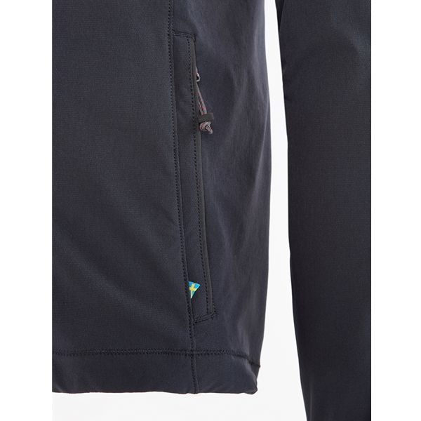 Klättermusen Mithril Jacket M’s on hyvännäköinen, klassinen miesten softshell-takki. Rento istuvuus, kestävää ja joustavaa, hyvin tuulelta suojaavaa materiaalia. Takin kulutuskestävyyttä ja käyttöikää on parannettu Duracoat-pintakäsittelyllä päälle ommeltujen paneeleiden sijaan, jotka lisäävät vaatekappaleen painoa. Korkea, mikrofleece-vuorilla varustettu kaulus, vino vetoketju ja pidennetty takaosa tarjoavat lisää tehokasta suojaa tuulelta, samalla kun epäsymmetristen hihansuiden ja säädettävän vyötärön resorit suojaavat kylmältä tehokkaasti. Lisäksi takissa on suljettavat taskut, joissa voi kantaa mukanaan pienempiä tarvikkeita, sekä heijastimet, jotka lisäävät näkyvyyttä pimeällä.