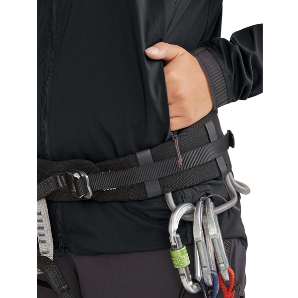 Klättermusen Nal Hooded Jacket W’s on toiminnallinen tuulitakki hupulla naisille, tehty tarjoamaan täydellinen tuulisuoja korkean intensiteetin aktiviteettien aikana. Takki on valmistettu ohuesta, kevyestä materiaalista, joka hengittää, ja siinä on fluorihiiletön vedenpoisto, joka suojaa tarvittaessa kosteudelta. Rakenne tarjoaa myös vapaata liikkuvuutta, kun taas korkea kaulus lisää aurinkosuojaa ja pidempi helma takana lisää mukavuutta ja suojaa. Takissa on myös korkealle sijoitetut, valjaisiin sopivat taskut, joustavat hihansuut, säädettävä helma, kevyet vetoketjut, tiukka huppu, pehmeä niskatuki/-suoja, vetoketju pillillä sekä heijastimet edessä ja takana.
