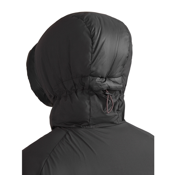 Klättermusen Nifelheim Jacket M’s on miesten lämmin untuvatakki vuorikiipeilyyn. Tämä takki on valmistettu vedenpitävästä hanhenuntuvasta 90/10 (90 % hanhenuntuvaa, 10 % höyheniä), ja se on valmistettu Box-rakenteella, jotta untuvat pysyvät paikallaan välttäen kylmät alueet. Se on vahvistettu olkapäistä ja niskasta, ja siinä on pehmustetut tuulensuojat kaksisuuntaisen vetoketjun päällä. Huppu sopii useimpien kypärien päälle ja on säädettävissä kolmessa kohdassa, ja se on varustettu Windvisor-lipalla. Takissa on myös vetoketjun turvasolki, suuret mesh-taskut sisäpuolella, kaksi suurta käsienlämmittelytaskua, vetoketjullinen turvatasku ja heijastava kolmio.