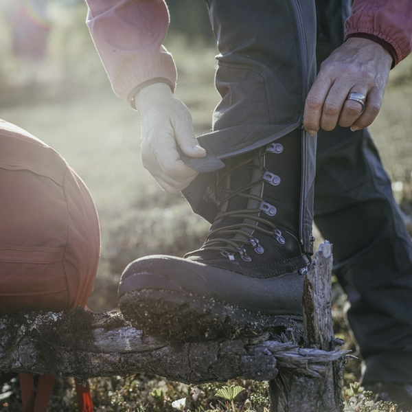 Kevyt vaelluskenkä miehille, siinä on vedenpitävä pohja ja ensiluokkainen nahkavarsi, joka suojaa ja antaa tukea vaeltaessa vaativassa ja vaihtelevassa maastossa.