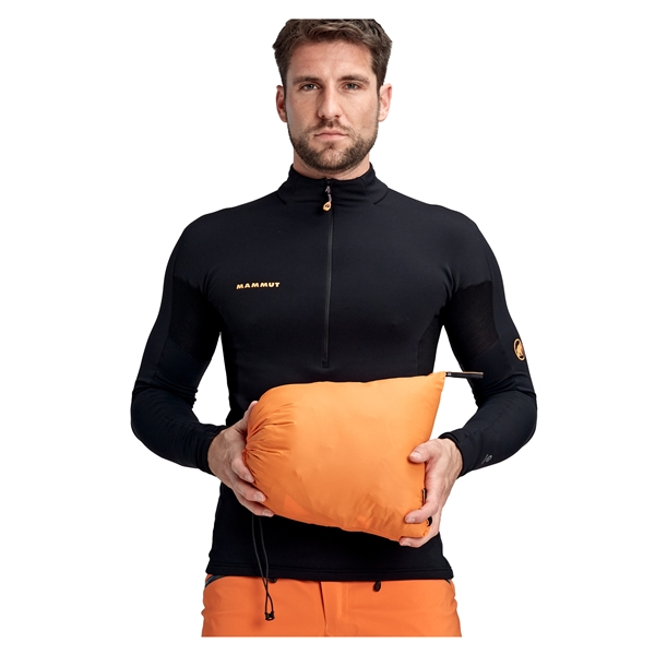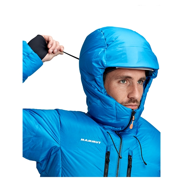 Mammut Eigerjoch Pro In Hooded Jacket Men on suorituskykyinen eristetty takki, jossa on luotettava eristys ja lämpö, miehille. Tässä takissa on kaksikammiorakenne, jossa on untuvaa ja PrimaLoft®-puseroa, joka mukauttaa takin eri vyöhykkeet kehon erityisvaatimuksiin. Kosteudelle alttiilla alueilla sekä takin sisäpuolella on käytetty PrimaLoft® -materiaalia kosteuden optimaalisen kuljetuksen varmistamiseksi, kun taas muilla alueilla on lämmin untuvatäyte, joka pitää kehon lämpötilan miellyttävällä tasolla. Takin ulkokangas on valmistettu erittäin kevyestä ja vettähylkivästä Pertex® Quantum -kankaasta, jossa on Pertex®Diamond Fuse -teknologia sääsuojaa ja kestävyyttä varten, ja siinä on teipatut saumat lisäävät lämpöä ja sääsuojaa. Se on myös täytetty 200 grammalla vettähylkivää 90/10-hanhen untuvaa, joka takaa optimaalisen lämmön. Takin mukana tulee ylimääräinen säilytyspussi, jossa on kaksi karabiinia.