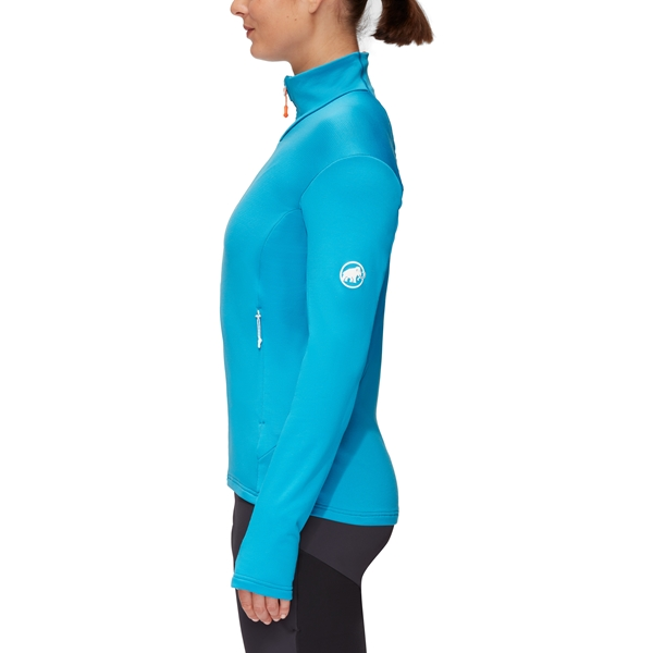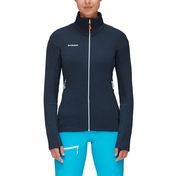 Mammut Eiswand Guide ml Jacket Women on tukeva, kestävä, erittäin monipuolinen ja lämmin keskikerrospusero, joka tarjoaa optimaalisen mukavuuden ja lämpötilan. Pääkangas on valmistettu korkealaatuisesta Pontetorto® Merino Tecnowool® -materiaalista, joka takaa optimaalisen mukavuuden ja täydellisen lämpötilan ja jossa on läpinäkyvä keraaminen painatus, joka takaa kulutuskestävyyden ja kestävyyden. Takin hengittävyyttä on parannettu kainaloiden alla olevan ohuen verkkomateriaalin ja villan luonnollisen antibakteerisen vaikutuksen ansiosta, joka rajoittaa epämiellyttäviä hajuja pitkienkin päivien jälkeen. Tämä takki toimii ulkokerroksena ja eristävänä kerroksena säänkestävän takin alla.
