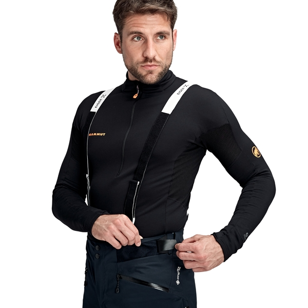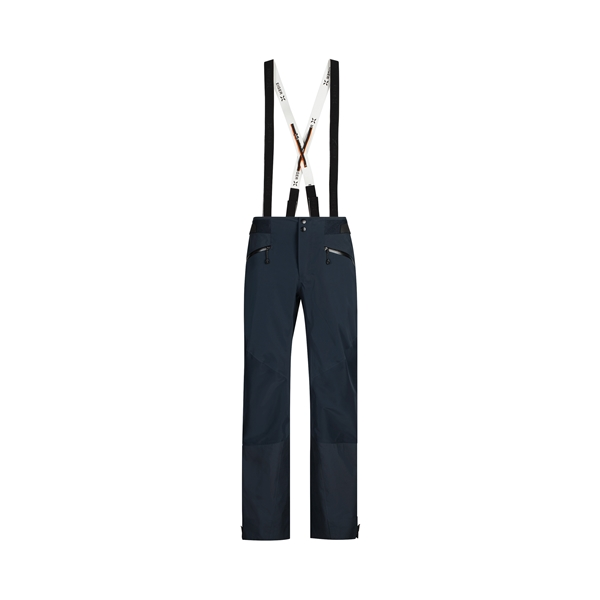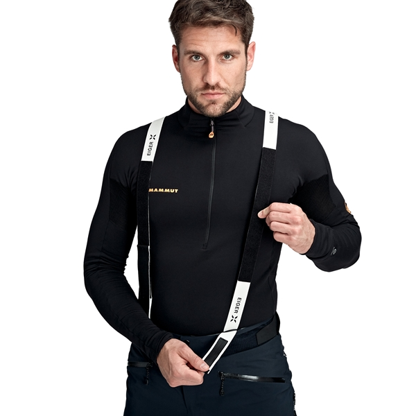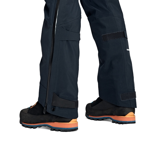 Mammut Nordwand Pro Hs Pants Men on Mammutin paras kestävä, kevyt ja joustava miesten kuorihousu äärimmäisiin tilanteisiin. Tämä kuorihousu on valmistettu Gore-Tex® Pro -kankaasta, jossa on ”most robust” -teknologia, joka tarjoaa täydellisen yhdistelmän sääsuojaa ja kulutuskestävyyttä, ja siinä on vyöhykepintaiset Gore-Tex® stretch-kangasosat, jotka antavat lisää liikkumisvapautta. Spun-värjätty aluskangas ja pintakangas lisäävät kestävyyttä, kun taas vettä hylkivä 2-suuntainen 3/4-vetoketju tarjoaa optimaalisen sivutuuletuksen. MAMMUT® Gaiter Solution™ tarjoaa täydellisen istuvuuden hiihto- ja maastokenkiin, ja jalan leveyttä voidaan helposti säätää laadukkailla Hypalon-koukkukiinnikkeillä. Kiipeilyyn sopiva leikkaus antaa liikkumisvapauden kallioilla, kun taas lähes tuhoutumattomasta Dyneema®-materiaalista valmistetut säärystimet, helmavahvikkeet ja kampurasuoja suojaavat kampureilta ja karkeilta kalliopinnoilta. Takana oleva vyötärönauha on hieman korotettu ja varustettu mesh-lisäosilla optimaalisen kosteudenhallinnan varmistamiseksi. Vyötärön erityistä leveyden säätöä voidaan säätää ulkopuolelta Hypalon-koukku- ja silmukkakiinnikkeillä täydellisen istuvuuden varmistamiseksi. Housuissa on kaksi kiipeilyvaljaiden kanssa yhteensopivaa etutaskua, joissa on vettähylkivät vetoketjut ja irrotettavat henkselit, joissa on litteä sulkemisjärjestelmä.