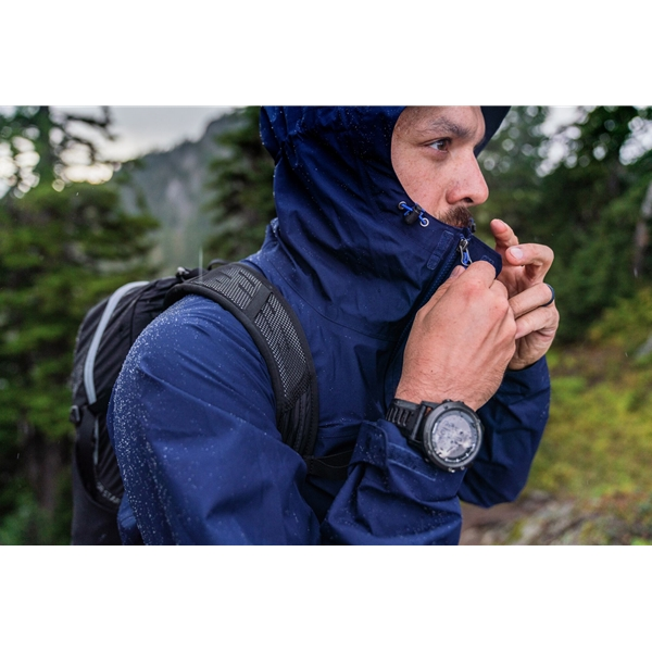 Kevyt, tuulen- ja vedenpitävä miesten kuoritakki sateisiin seikkailuihin.