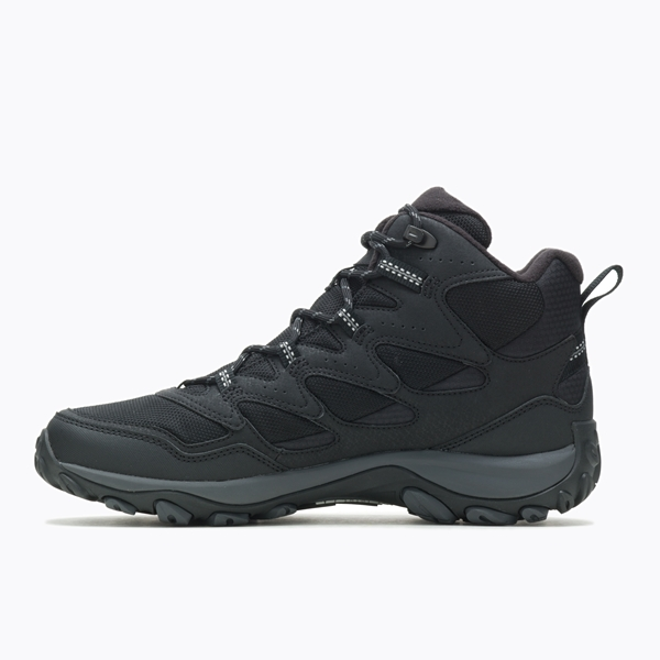 Merrell West Rim Sport Thermo Mid WP Men ovat lämminvuoratut, joustavat miesten kengät, joissa on vedenpitävä kalvo ja 200 gramman lämmin vuori. Hyvä vakaus ja iskunvaimennus sekä leveä lesti ja osittain kierrätysmateriaaleista valmistettu. Iskuja vaimentava Air Cushion -kantavaimennus.