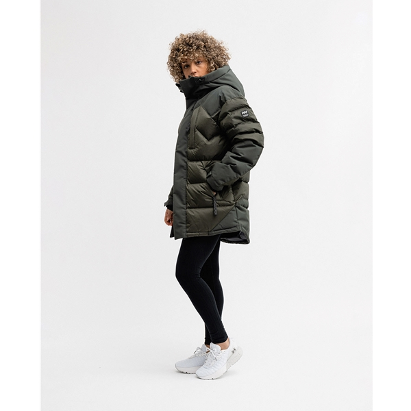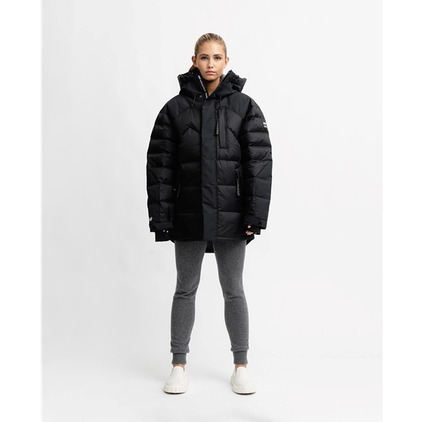 Suuressa untuvavuoratussa hupussa on kiristysnauhat säädettävyyttä ja optimaalista istuvuutta varten. Hihansuissa on joustavat sisähihansuut ja säädettävät tarranauhat, jotka pitävät kylmän tuulen ja lumen poissa.