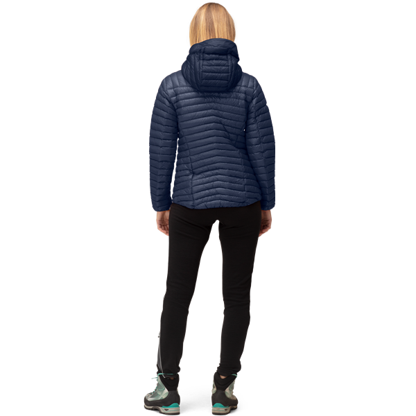 Norrönan kevyin ja pakattavin hupullinen untuvatakki naisille.