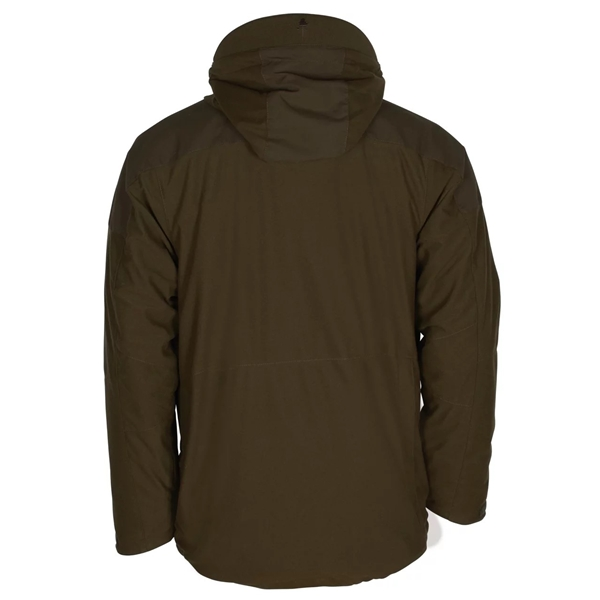 Pinewood Småland Forest -takki on kevyesti pehmustettu Thermolite®:llä, ja se on tuulenpitävä ja vedenpitävä teipatuilla saumoilla. Se on hyvin hengittävä, ja sen sivuilla on verkkoaukot, jotka voidaan avata vetoketjulla ilmanvaihtoa varten. Vyötärönauhaa voidaan säätää kiristysnauhan avulla. Huppu on irrotettava ja säädettävissä hyvän istuvuuden varmistamiseksi, ja siinä on sisäänrakennettu suoja sateelta. Varustettu oranssista kankaasta valmistetulla näkyvyyttä lisäävällä lisäkauluksella, jota voidaan käyttää alas- tai ylöstaitettuna. Etupuolella on radiotaskut molemmin puolin, jotta se sopii sekä oikea- että vasenkätisille ampujille. Takissa on myös sisäänrakennettu heijastinnauhalla varustettu tasku takin oikeassa hihassa, magneettisuljin varustetut etutaskut, fleecevuoratut käsilämpötaskut ja vetoketjullinen GPS-tasku. Kiinnitys käytännöllisellä kaksisuuntaisella vetoketjulla ja magneetilla. Hihansuissa on hihansuut, joissa on peukaloreiät, jotka eristävät kylmää vastaan. Takki on ympäristöystävällinen, sillä se on valmistettu kierrätetystä polyesteristä ja värjätty E-Dye®-liuoksella – vedettömällä värjäysjärjestelmällä. Tyylikäs ja toimiva takki, joka sopii täydellisesti syksyn metsästykseen.