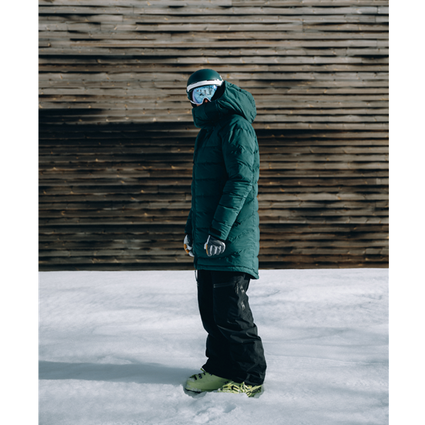 Tehty käytettäväksi talven kylmimpänä aikana, ja sen kaikkia vetoketjuja voi käyttää hanskat kädessä. Hihat ovat esitaivutetut ja antavat suurta liikkumavapautta. Säädettävä huppu antaa suojaa säältä ja se on tarpeeksi suuri sopimaan kypärän päälle, joten sitä voi käyttää niin mäessä kuin merkittyjen reittien ulkopuolella. Hupussa on lisäksi heijastava logo, joka antaa parempaa näkyvyyttä pimeässä. Suurissa verkkotaskuissa on tilaa laseille, hanskoille ja monelle muulle. Turvallinen hissilipputasku on sijoitettu siten, että se on aina oikealla kohdalla, kun ohitetaan hissilipun lukijat.
