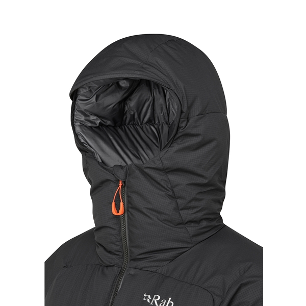- Täysin säädettävä, kypärän kanssa yhteensopiva untuvatäytteinen huppu jäykällä yläosalla lisäämään suojaa