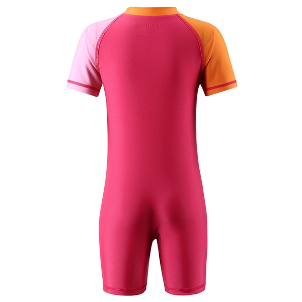 Reima Anguilla -uimahaalari on auringolta suojaava puku kaikille rantalapsille ja sopii täydellisesti lomalle. Tämä täysin peittävä uimapuku tarjoaa optimaalisen aurinkosuojan, ja sen hihat ja lahkeet päättyvät kyynärpäähän ja polveen. Puvussa on aurinkosuojakerroin 50+, ja se on valmistettu miellyttävästä joustavasta kankaasta, joka kuivuu nopeasti. Uimapuvussa on etuvetoketju, joka helpottaa pukemista. Lisäksi vaate on ympäristön kannalta hyvä valinta, sillä osa kuitupehmusteesta on valmistettu kierrätetyistä PET-pulloista.