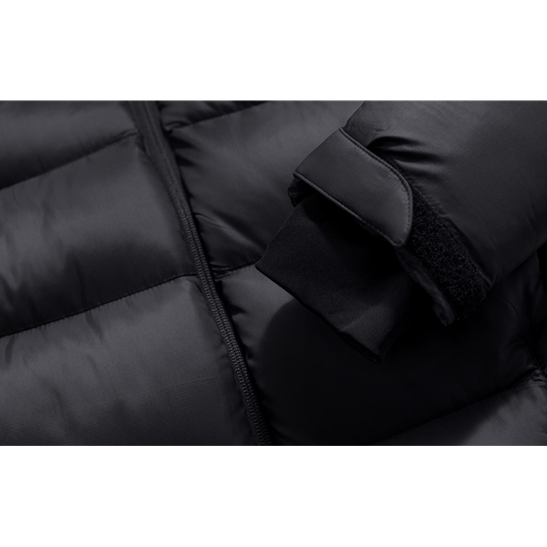 Lämmin ja vedenpitävä untuvatakki hupulla naisille.