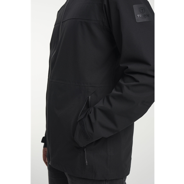 Tämä on automaattisesti käännetty teksti: Dew Point Shell on vedenpitävä takki, joka hengittää ja jossa on hyvä ilmanvaihto. WP 10 000:lla voit pysyä ulkona tuntikausia sateessa, ja siinä on myös tiivistetyt saumat ja vedenpitävät vetoketjut, jotta et kastu. Huppua voidaan säätää niin, että se istuu hyvin ja se voidaan myös irrottaa, jos sitä ei huvita. Jopa käsivarret ovat säädettävissä, joten voit kiristää niitä, jos sataa paljon. Takki on myös joustava ja siinä on valmiiksi taivutetut hihat, joten saat optimaalisen liikkuvuuden etkä vaaranna hihojen nousemista.