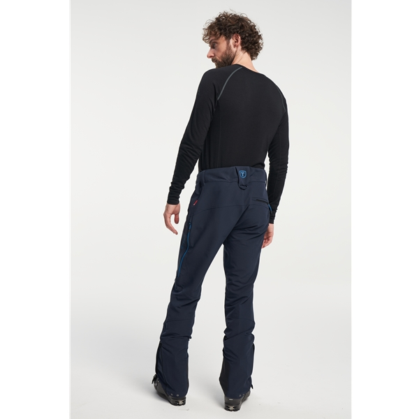 Miesten softshell-turistihousut ovat tuulenpitävät, vettähylkivät ja hyvin hengittävät. Ne ovat nopeasti kuivuvat, jos kastut, ja niissä on nelisuuntainen stretch, jonka ansiosta voit liikkua esteettä. Niissä on hienot vahvistukset ja ne ovat säädettävissä sekä vyötäröltä että helmasta, jotta ne sopivat oikein. Softshell-housuissa on vetoketju lahkeensuissa, jotta ne voidaan säätää kenkien tai hiihtokenkien mukaan, ja niissä on myös koukku kenkien tai hiihtokenkien kiinnittämistä varten. Niissä on kaksi vetoketjullista etutaskua, yksi vetoketjullinen reisitasku ja yksi takatasku. Yhdistä touring softshell-housut touring softshell-takin kanssa, niin saat täydellisen setin.