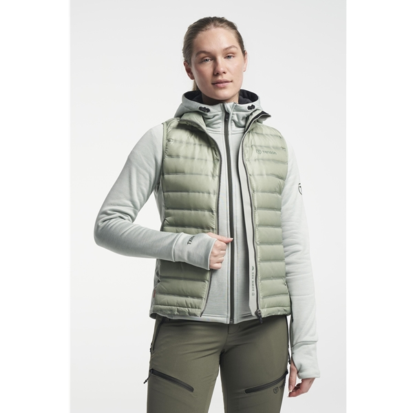 Tenson Txlite Down Vest W on kevyt naisten untuvaliivi, jossa on RDS-sertifioitu hanhen untuvaeriste, jossa on 800 täytetehoa ja joka pitää sinut lämpimänä koleina päivinä. Liiviä voi käyttää joko sellaisenaan tai sateen sattuessa välikerroksena kuoritakin alla.