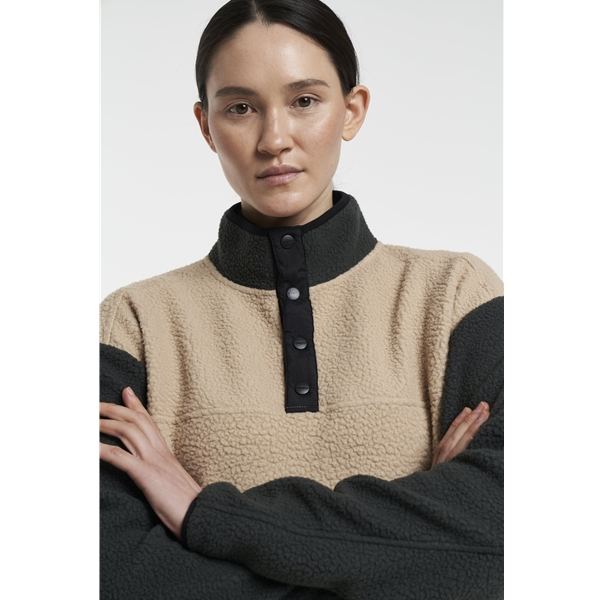 Tenson Yoke Button Pile W on lämmin ja mukava naisten fleecepusero, jonka pehmeä teddykangas pitää sinut lämpimänä kylmissä seikkailuissa. Puseroa voi käyttää sekä sisällä että ulkona tai lämpimänä välikerroksena talvi- tai kuoritakin alla. Siinä on myös mukava nappikaulus, kaksi etutaskua ja vetoketjullinen rintatasku, joustavat hihansuut ja kiristysnauha helmassa.