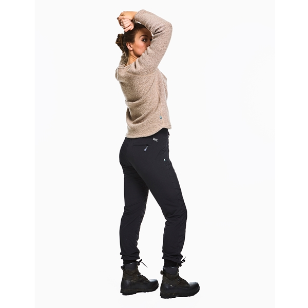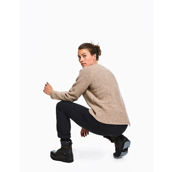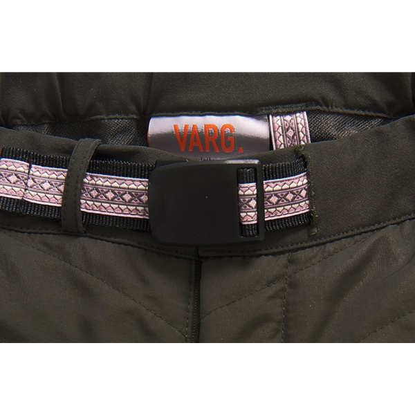 Varg Mora Pant ovat naisten joustavat hybridihousut, jotka ovat ehdoton hankinta kaikille aktiivisille! Housut on valmistettu synteettisistä materiaaleista ja niiden takaosassa on mukavat stretch-paneelit ja etupuolella Dupont Sorona -eriste tuomassa lisälämpöä ja tuulensuojaa. Kapea istuvuus yhdessä säädettävän, vyöllä varustetun vyötärön, selkäosan resorin ja lahkeensuiden pehmeiden resorien kanssa parempaa mukavuutta. Housuissa on lisäksi kaksi etutaskua ja yksi vetoketjullinen takatasku, heijastavat yksityiskohdat sekä etupuolella suljenta painonapilla ja vetoketjulla. Mora Pant -housuja voidaan käyttää sellaisenaan, mutta ne sopivat hyvin myös eristäväksi vaatteeksi.