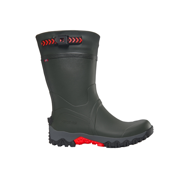 Tämä on konekäännetty teksti: Vikings Trophy -kenkä on palkittu, toistuva suosikki, joka tarjoaa äärimmäisen suorituskyvyn mutaisilla poluilla ja epätasaisessa maastossa. Nämä saappaat on valmistettu alhaisen tiheyden kumisekoituksesta, joka vähentää saappaan kokonaispainoa laadusta tinkimättä. Kumi koostuu kolmesta kerroksesta koko saappaan jalassa, mikä lisää vakautta ja kestävyyttä. Tässä Trophy-versiossa on keskikorkea varsi ja säädettävä hihna, joka istuu saappaan yläosassa, pohkeen päällä, käsittelemään elementtejä ja pitämään sinut kuivana. Nämä metsästäjille ja karjankasvattajille suunnitellut saappaat on varustettu Vikingin ainutlaatuisella UGC®-pohjalla, joka on jämäkkä ulkopohja, jossa on syvät monisuuntaiset urat, jotka peittävät koko pohjan paremman pidon saamiseksi ulkona. Varsi on vuorattu kestävällä ja nopeasti kuivuvalla polyesterivuorella. Muotoiltu EVA-pohjallinen on suunniteltu koko päivän mukavuuteen, ja se on irrotettava nopeaa kuivumista varten. Tässä saappaassa on normaali istuvuus varren ja nilkan poikki, ja jalkatila on tilavampi.