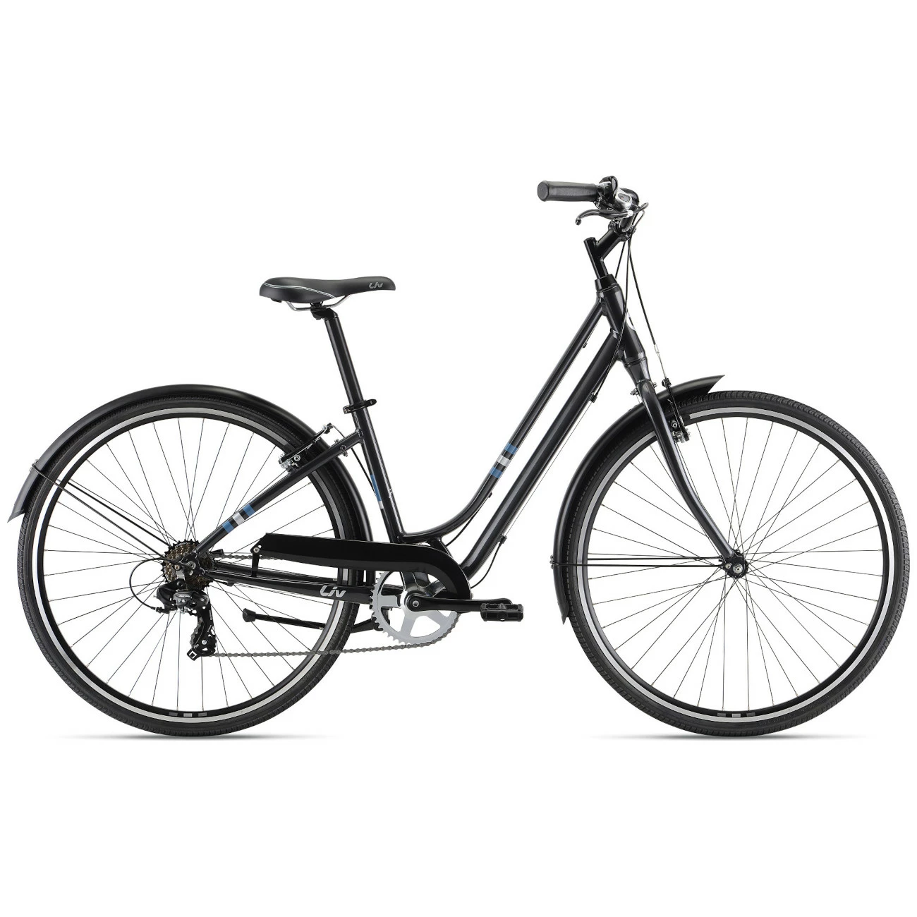 The Liv Flourish FS 3 city bike’s lightweight, low-profile aluminium frame makes riding around town easy and comfortable. A shock-absorbing seatpost and soft, spring-loaded saddle absorb all road bumps for a smooth and comfortable ride.
